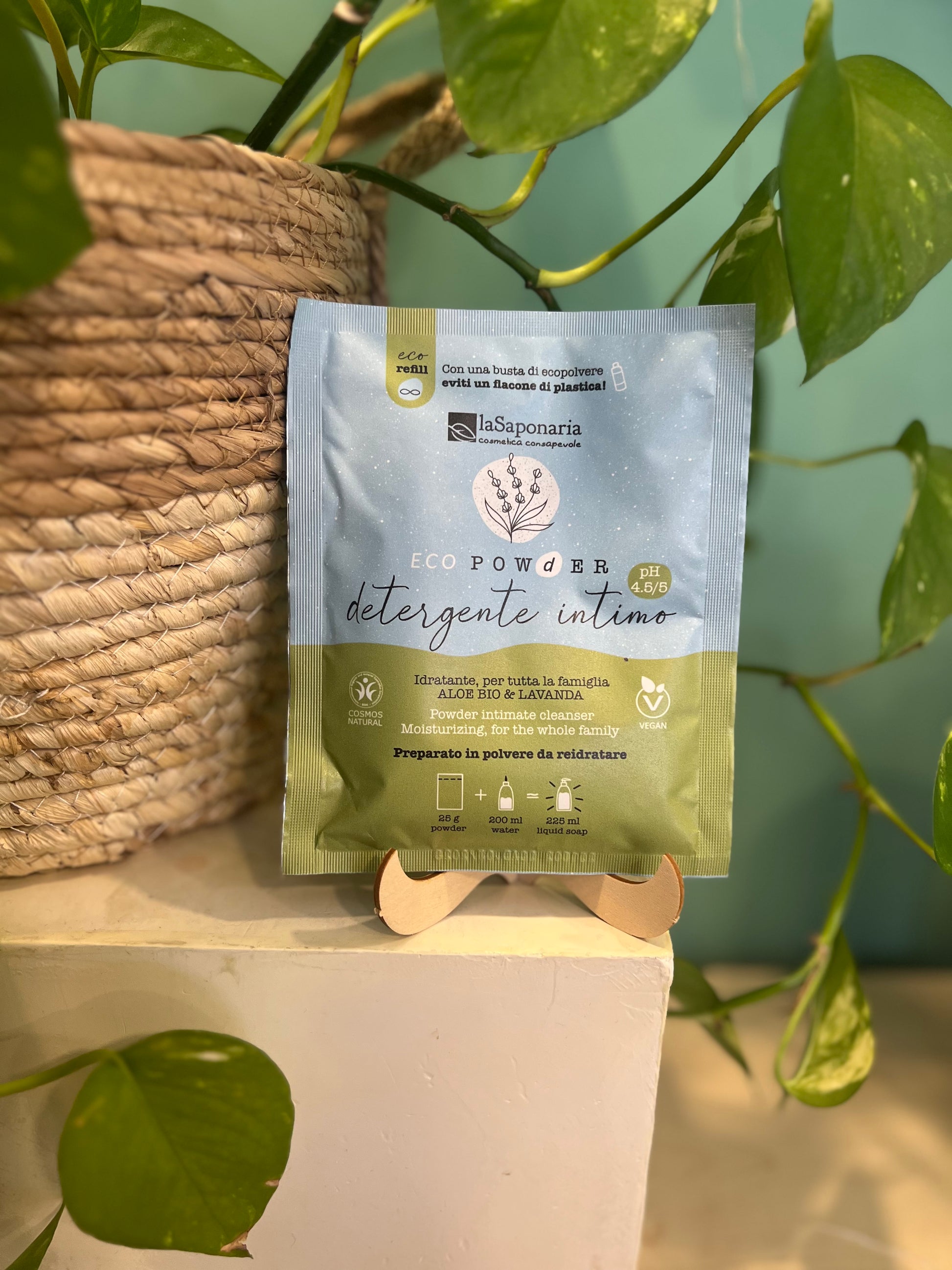 Con la sua formula in polvere, basta versare il contenuto della busta in un flacone, aggiungere acqua e si ottiene così un detergente intimo pronto all’uso. In questo modo puoi riutilizzare lo stesso contenitore all’infinito, riducendo rifiuti e imballaggi superflui. Un piccolo gesto quotidiano che fa bene all’ambiente e rende la routine di tutta la famiglia più sostenibile.